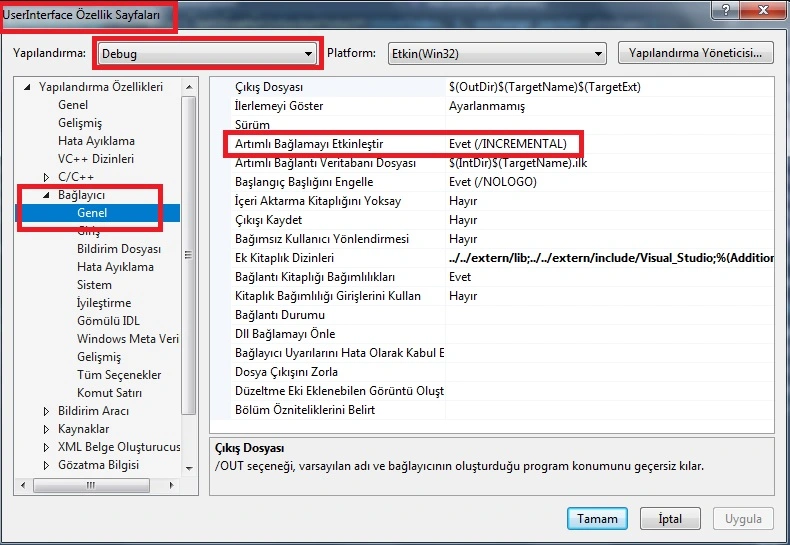 Gösterdiğim ayar sadece Debug mod için "Evet" olacak, diğer modlar için "Hayır" olacak.
