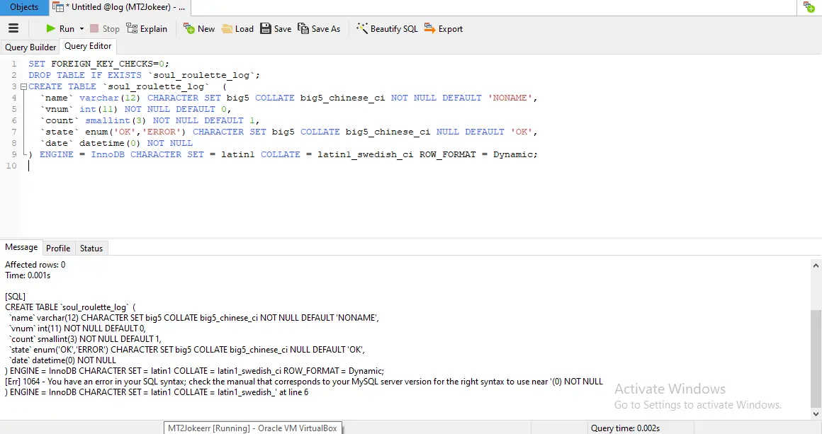Query okutmak yerine el ile tabloyu oluşturmayı deneyin.