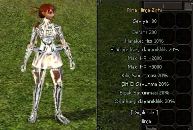 sistem değilde item var beyaz rina zırhını biliyor musunuz ? ben deneyip bir türlü ekleyememiştim içimde kalmıştıKişiselleştirme seçenekleri filesi devamında geliştirecek kişiye kalmış, won sistemi elimde var fakat eklemememin nedeni ileride biri offlineshop veya ticaret camı gibi bir sistem eklendiğinde ona göre uyarlaması için kişiye zorluk çıkarttırmamasından yanayım. Adı üstünde altyapı files olacağı için az ve öz sistemler ve görsel güzellikler eklenicek sadece. Yine de istediğiniz sistem olursa yazın, altyapıyı bozmayacak bir şeyse yaparım.